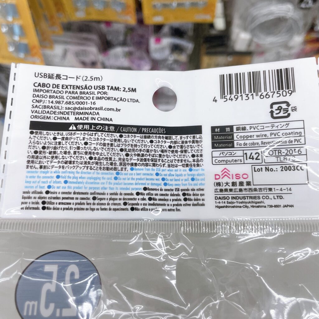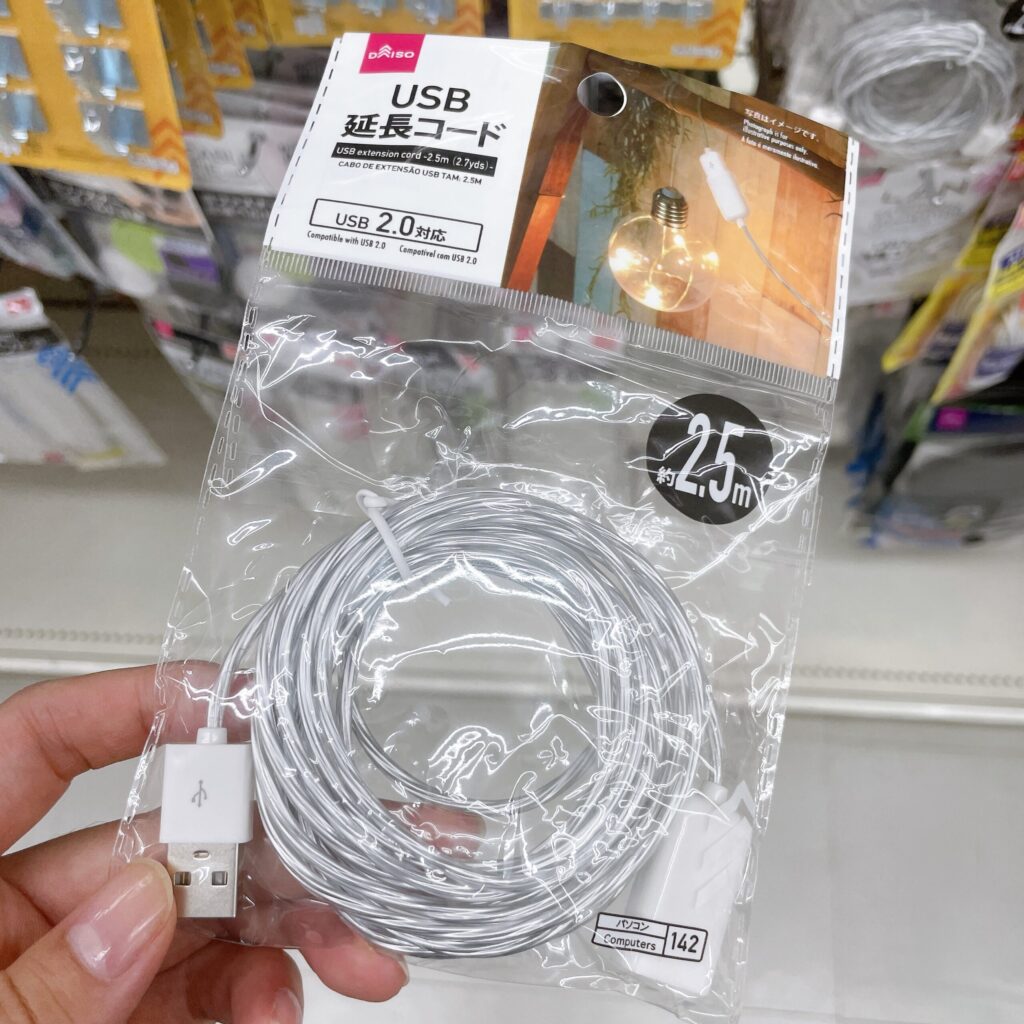 今回購入したUSB延長ケーブルはセリアですが、ダイソーでもUSB延長ケーブルは販売しています。