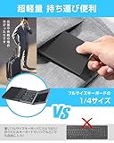 続いて折りたたんでコンパクトに持ち運べるタイプのキーボード。先日著者も購入して使いごこちの良さを確認済です。折りたたむと比較的コンパクトですが、展開するとフルキーサイズに近い広々としたキーボードになります。こちらもJIS配列。