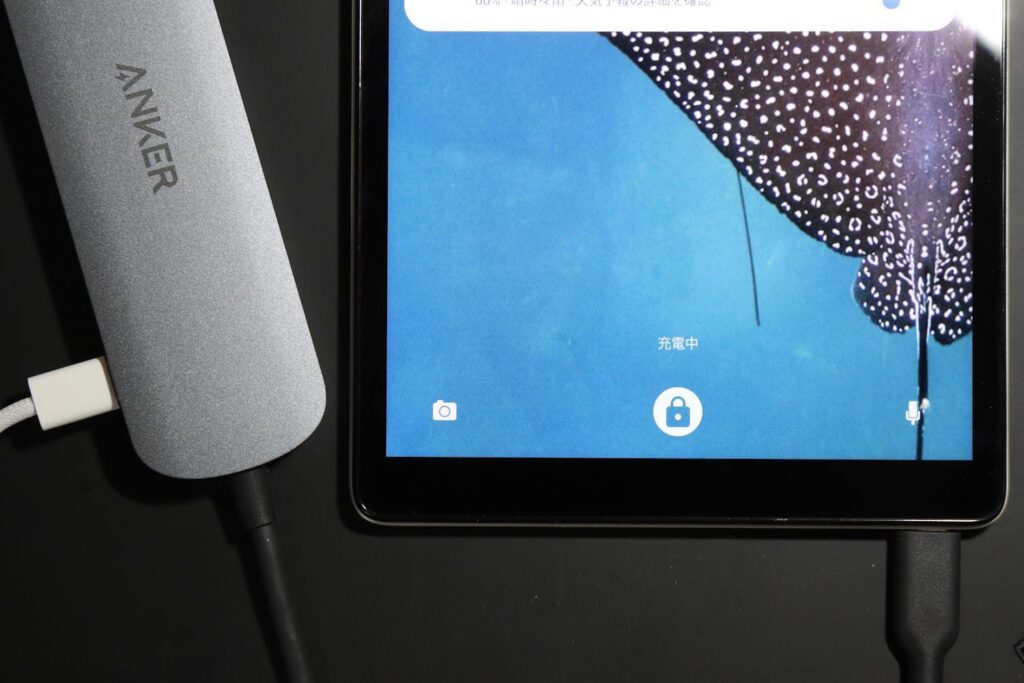 AnkerのNano USB-C ハブ(7-in-1)は外部ディスプレイを接続しつつ、繋いだACアダプタからディスプレイやiPadに給電できます。