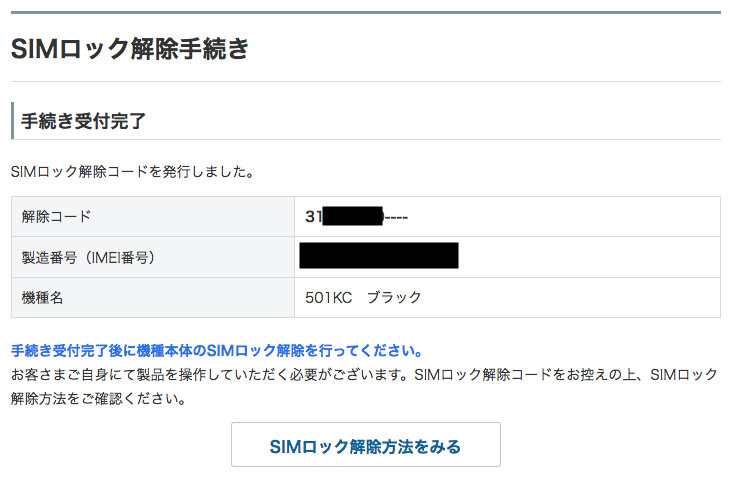 ・「解除コード」に表示されている番号をメモします。この際ハイフン入らないです。